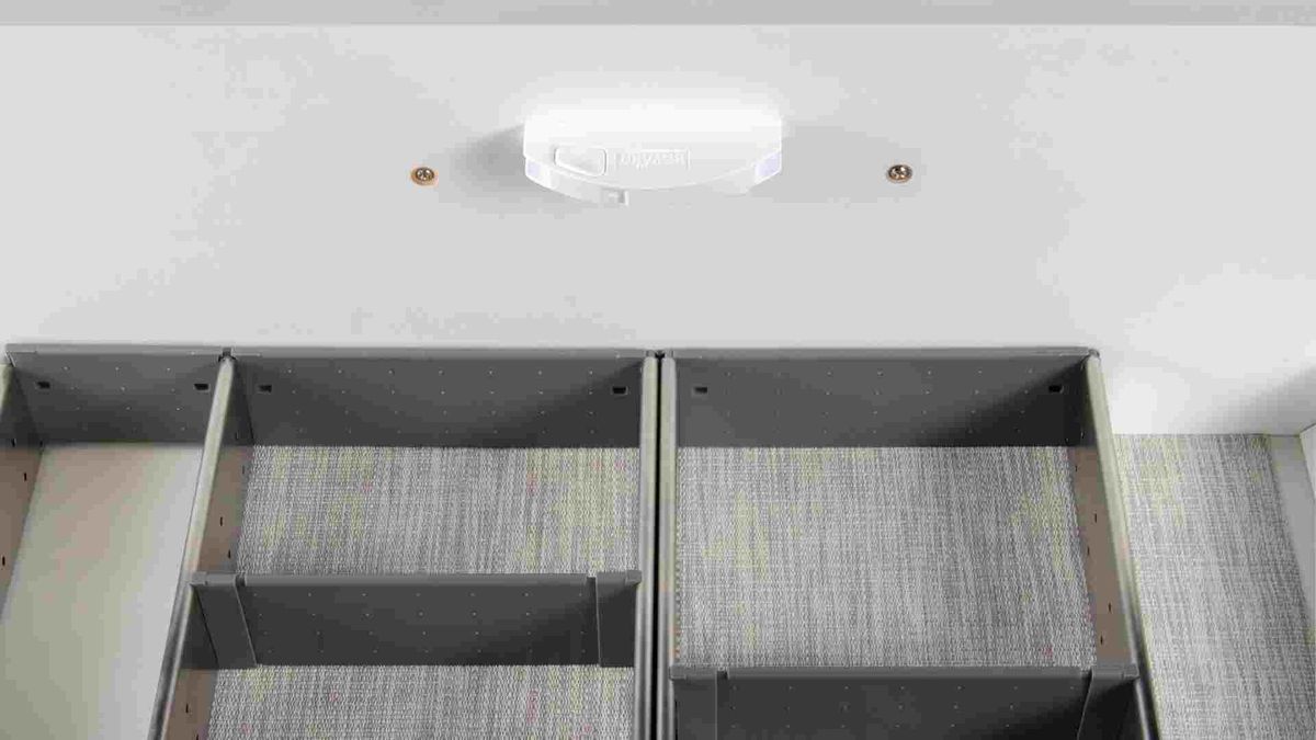 Держатель легко закрепляется на саморезы (идут в комплекте держателем) с обратной стороны фасада, и надёжно фиксирует внутренний ящик, а одним нажатием кнопки отпускает его.