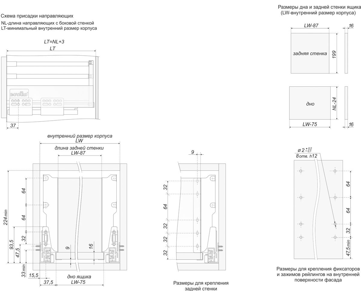Рейлинги в средних и высоких ящиках обеспечивают устойчивое положение содержимого. В ассортименте BOYARD рейлинги SBR04 предусмотрены под любую глубину ящика – от 270 мм до 550 мм. Для идеального монтажа рейлингов предусмотрена встроенная регулировка в диапазоне ±3 мм.