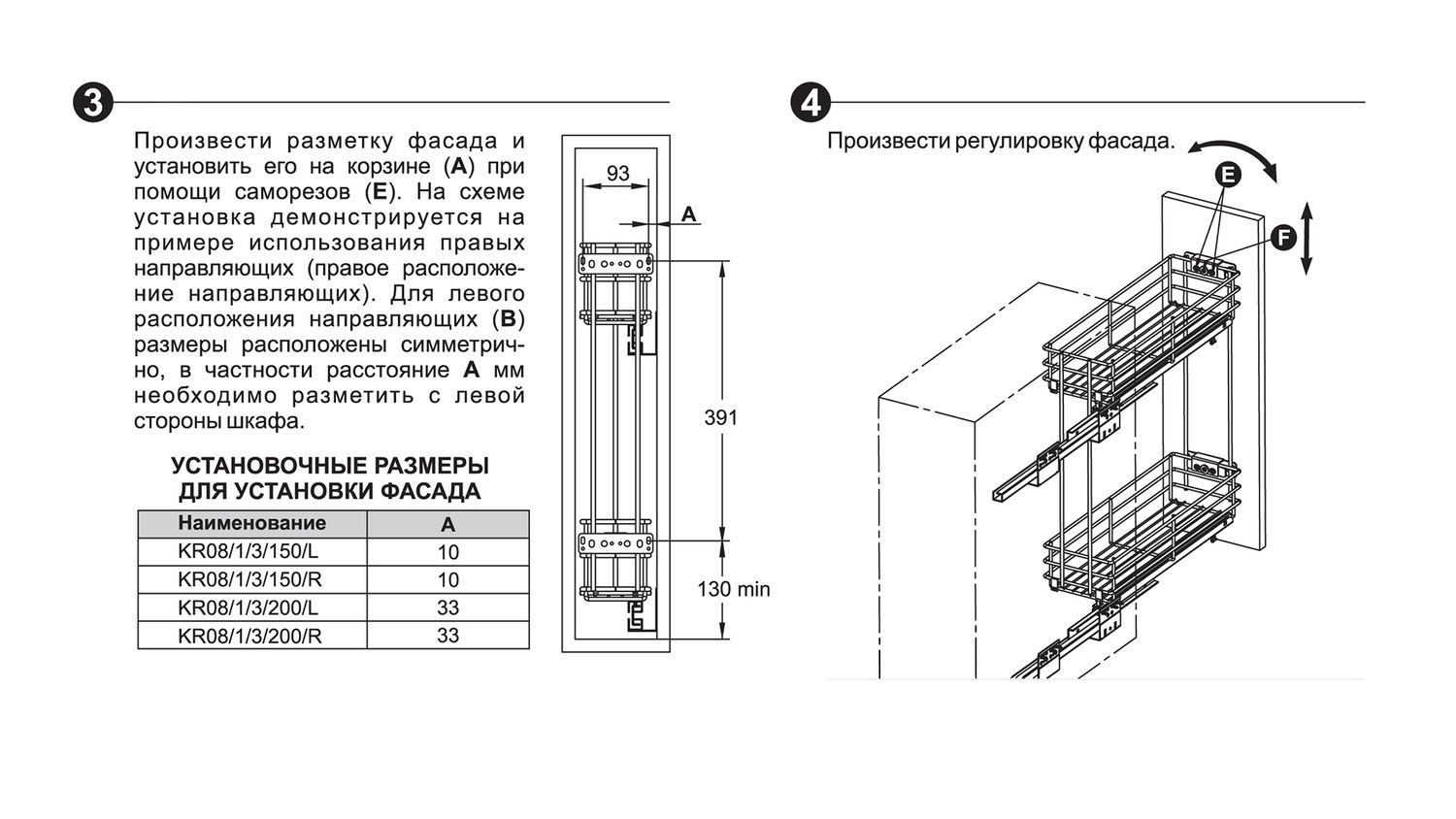 Bellissimo функционирует на направляющих скрытого монтажа полного выдвижения с амортизацией. Модель обеспечит удобный полный доступ к продуктам и жидкостям. Ассортимент Bellissimo включает четыре варианта бутылочниц для нижних баз кухонных гарнитуров: для модулей размером 150 мм и 200 мм с левым или правым расположением направляющих.