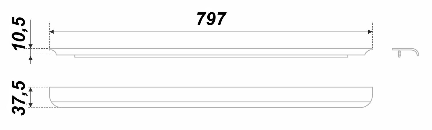 Ширина фасадов 400, 450, 500, 600, 800 – самые распространенные в массовом секторе мебели. Именно с такими параметрами предложены торцевые ручки M «в размер» фасада.