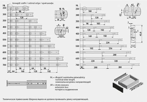 Направляющие шариковые полного выдвижения GX1 45/700 мм. - PK-0H45700GX1