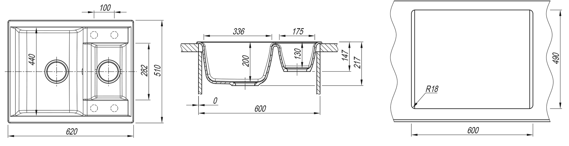 - Кухонные мойки DR.GANS имеют правильную геометрическую форму, которая дает идеальное прилегание изделия к столешнице.